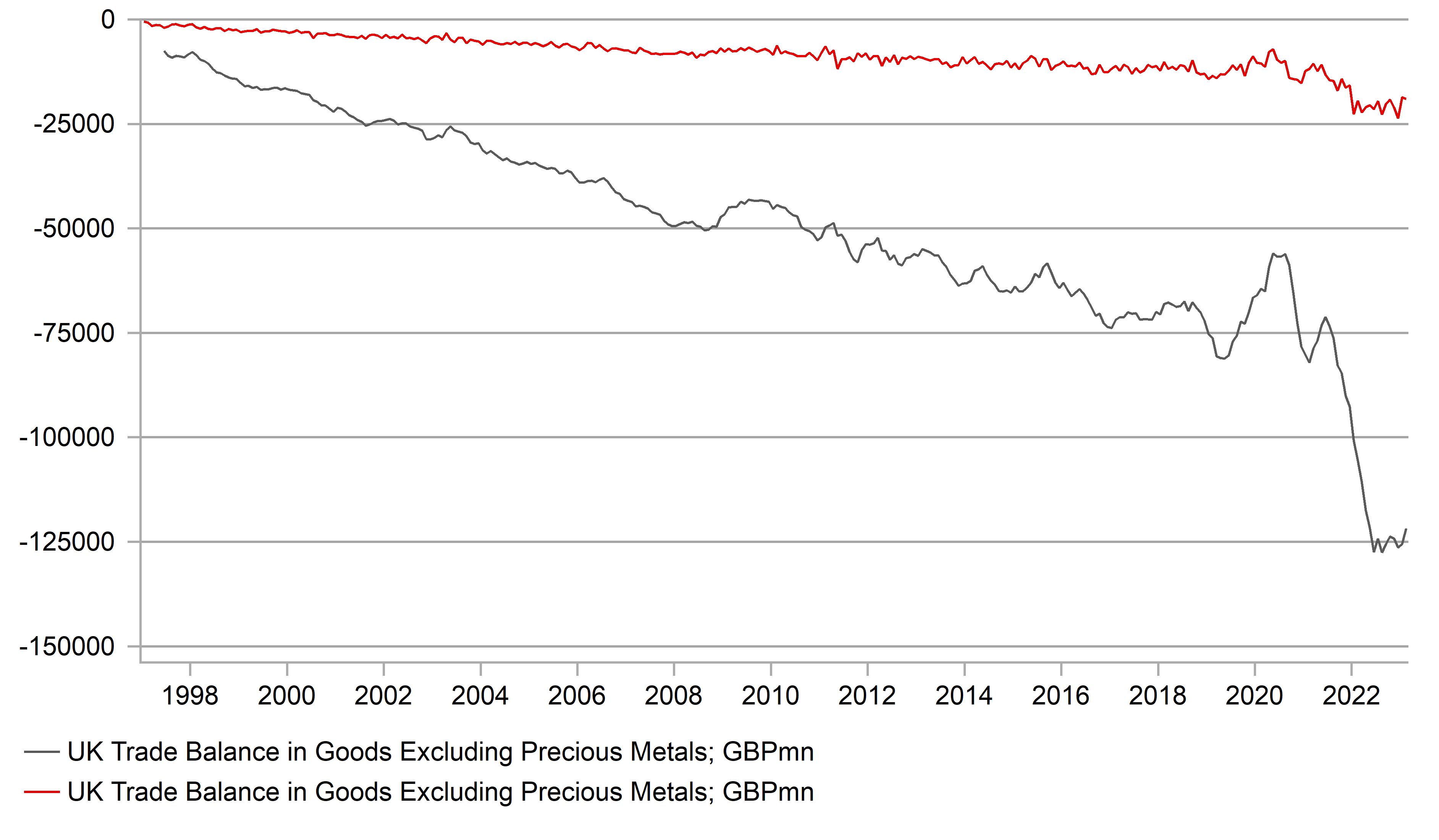 UK GOODS DEFICIT REMAINS CLOSE TO RECORD