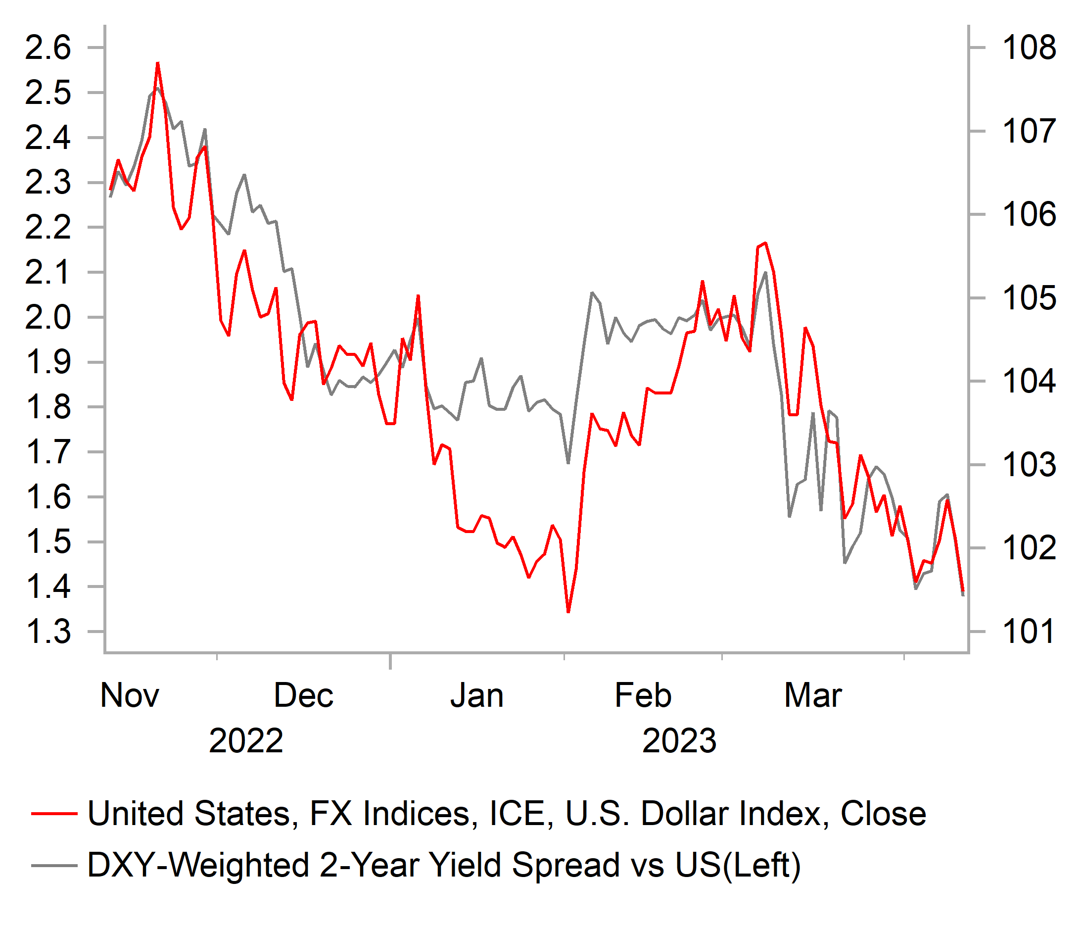 The USD weakened further this week and has resulted in the dollar index falling to a new intra-day low of the year, breaching the low from 2nd February to reach 100.78. It has brought the decline for the dollar index since the intra-day high on 8th March closer to 5%. The collapse of the Silicon Valley Bank and the subsequent loss of confidence in other US regional banks has proven to be an important bearish turning point for the USD. It is poised to extend its decline further with important support levels in the process of being challenged. In recent days there have been a number of bearish technical developments including: i) EUR/USD has broken above the year to date high from 2nd February at 1.1033 and has reached its highest level in just over a year, ii) USD/CHF has fallen even more sharply to its lowest level the start of 2021 after breaking below the 0.9000-level, and iii) USD/CAD has fallen below support for the 200-day moving average at around 1.3400 for the first time since the summer of last year. The only G10 currency that has failed to extend its rebound against the USD over the past week has been the JPY. The dovish communication (click here) from new Governor Ueda earlier this week has pushed back against expectations for the BoJ to adjust YCC settings as soon as this month delivering a temporary setback for the JPY.