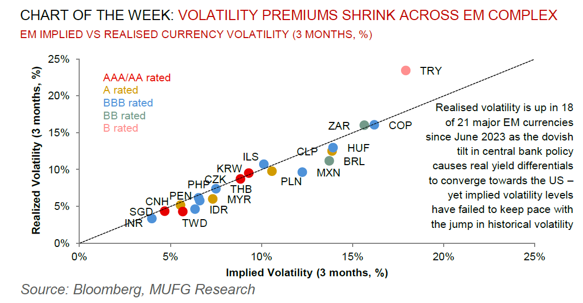 It has been another difficult week for EM FX. The USD has extended it advance for the eighth consecutive week against other major currencies and it is continuing to place downward pressure on EM FX. Our equally-weighted EM FX index remains close to year to date lows against the USD. The National Bank of Poland has since followed by delivering a larger than expected 75bps cut last week. It has triggered a sharp sell-off for the PLN resulting in EUR/PLN moving back above the 4.6000-level for the first time since April. It marks an abrupt turnaround for EUR/PLN after it had been threatening to break below the 4.4000-level heading into the summer. The negative initial market reaction highlights that market participants are not convinced that the improvement in the inflation outlook in Poland justified such a large rate cut.