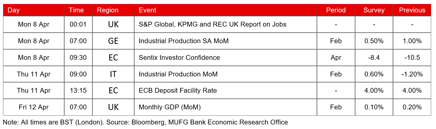 Next week will also see the release of German industrial production for February. Data on the manufacturing sector has been mixed with better news in the Ifo survey contrasting with a weaker figure in the latest PMI.