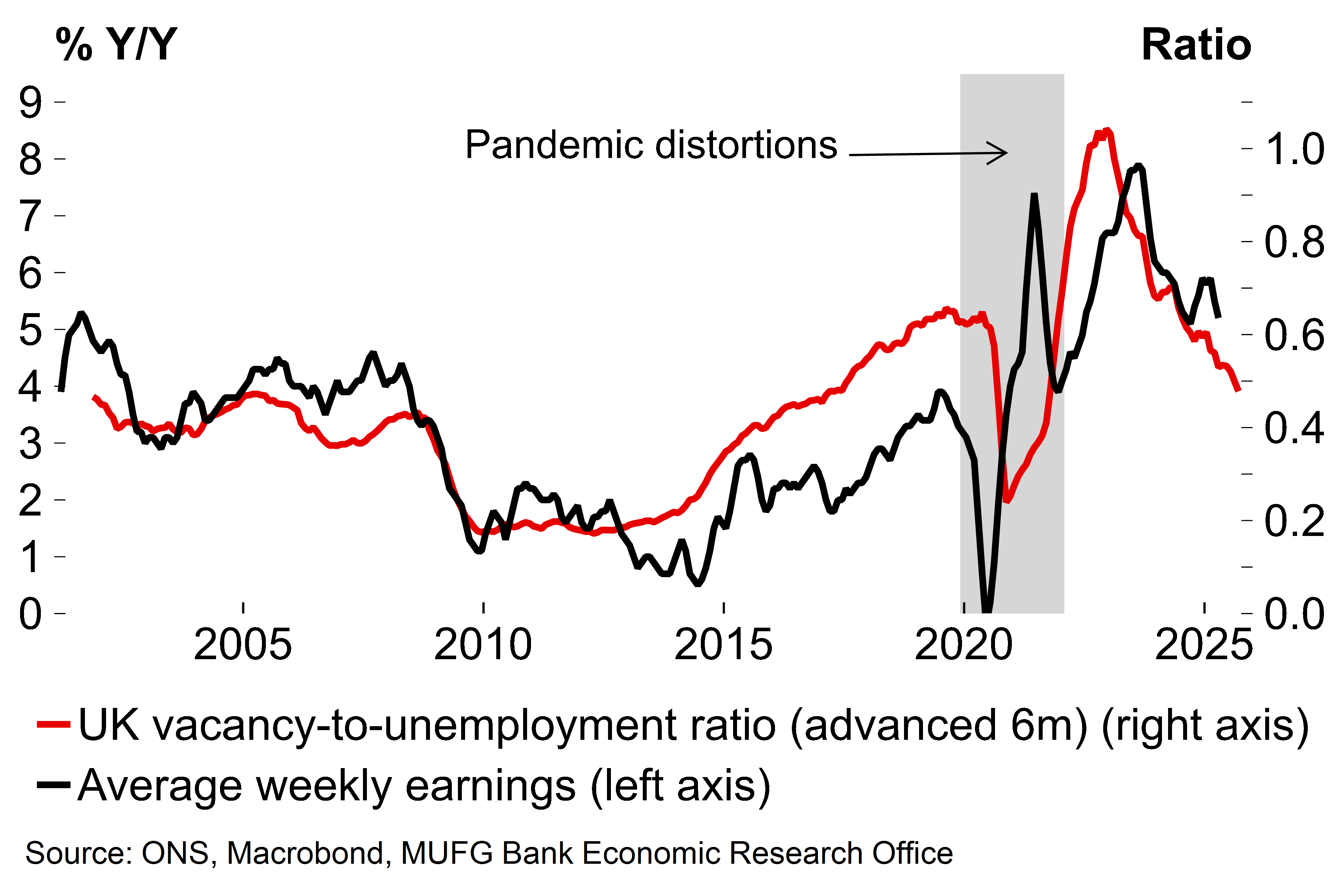 There are various other, legitimate areas of concern. UK labour market slack is plainly increasing – the vacancies-to-unemployment ratio continues to fall and is now well below the 2019 average, and there was a notable plunge in payroll employment in the initial estimate for May. With official redundancy notification data not yet ringing alarm bells, our view remains that the labour market is losing steam rather than collapsing. We see it as a situation of broad-based attrition driven by various factors (e.g. the BoE’s restrictive stance, heightened uncertainty, government policy choices). But next week’s labour market data would certainly challenge that story if there’s no revision to the dire preliminary May payrolls figure and another weak estimate for June.