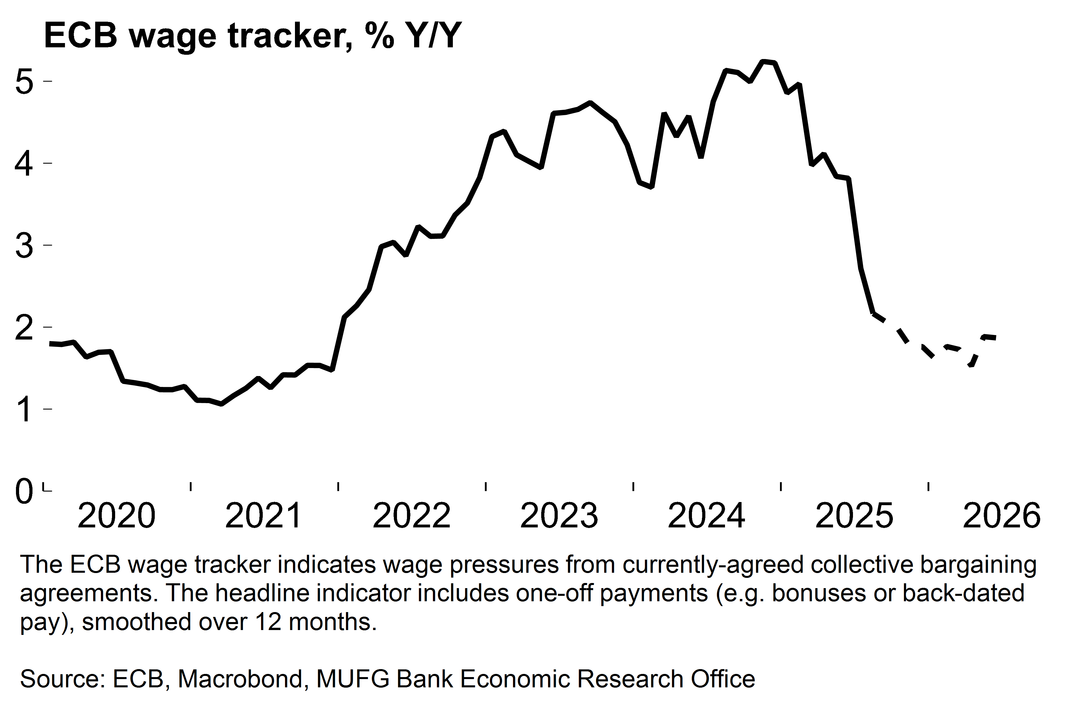 On prices, forward-looking wage indicators are clearly pointing downwards as the scope for real pay catch-up after the 2021-22 inflation shock diminishes. Further euro strength (see here for our FX forecasts) is also set to weigh on import prices. Both we and the ECB expect that inflation will undershoot the target in 2026.