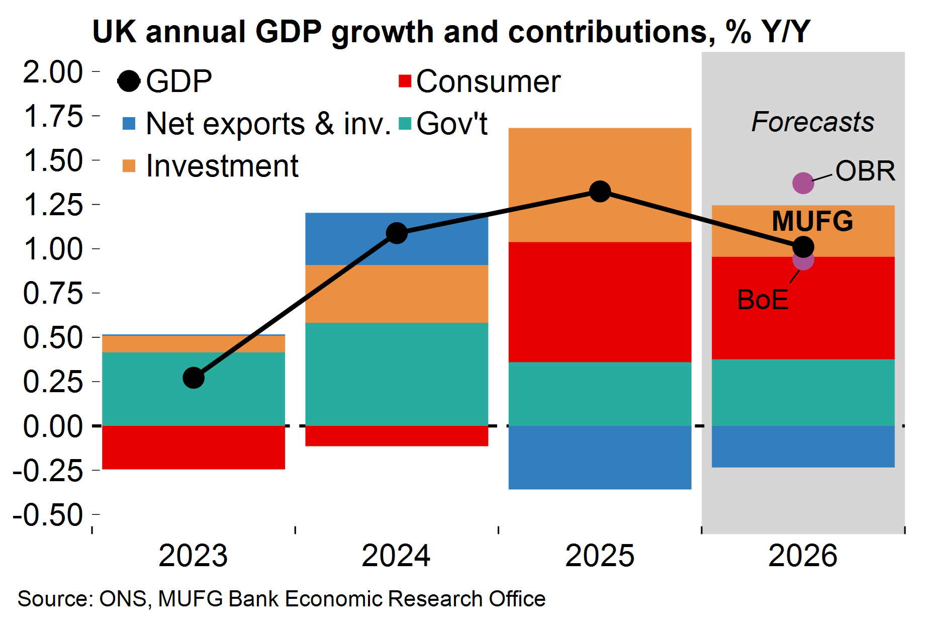 There is a risk that policy drift and persistent speculation around a leadership challenge could weigh on business sentiment over coming months. But, looking through the noise, the macro fundamentals look OK. Mechanical disinflation and further BoE cuts (we expect the next move in March) support our view that UK growth will be reasonably resilient on a quarterly basis this year.