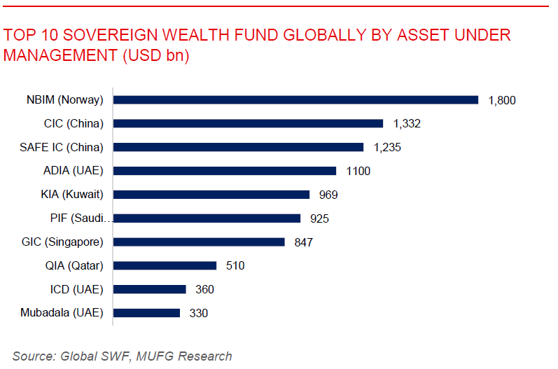 Saudi wealth fund boosts investment income despite profit drop amid economic pressures. Saudi Arabia’s Public Investment Fund (PIF) earned USD34.5bn from investment activities in 2024, up 38% y/y, driven by surging dividends and asset sales. However, net profit fell over 50% to USD7bn, as higher interest rates, inflation, and project impairments weighed on the performance. The results reflect growing pressure on the USD925bn fund, which is central to delivering the kingdom’s Vision 2030 agenda amid rising fiscal deficits and lower oil revenue. In response, the PIF is cutting budgets for some domestic projects, increasing borrowing, now at USD152bn, selling equity stakes, and exploring new fundraising options. While it plans to reduce the global share of its portfolio to 18%, the absolute value of overseas investment will rise, with capital deployment expected to reach up to USD70bn annually. The fund also raised its 2030 asset target to USD2.67 trillion, supported by stronger revenue from portfolio firms like Saudi National Bank and continued Aramco dividend inflows, though those are expected to shrink after payout cuts.