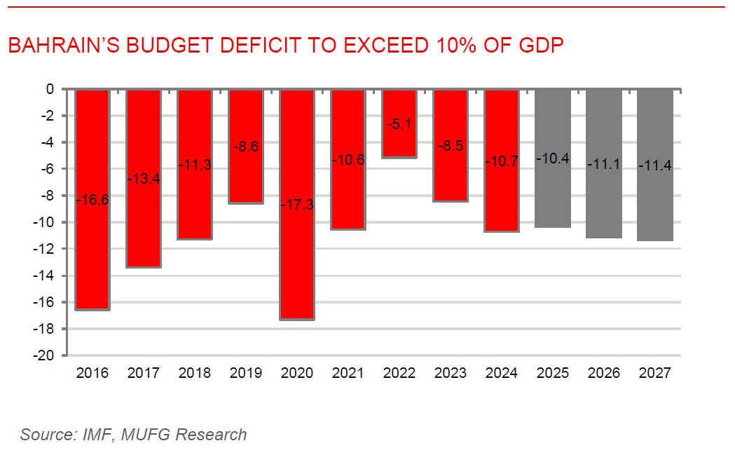 Bahrain raised USD2.5bn in bond sale amid mounting fiscal pressure. Bahrain raised USD2.5bn through a dual-tranche bond sale, comprising a USD1.5bn sukuk due 2034 at 5.875% and a USD1bn 12-year note at 6.625%, attracting peak orders of about USD8.5bn. The issuance highlights strong investor demand for the region’s higher yields as US rates decline, following similar sales from Kuwait and Egypt. Despite this appetite, Bahrain remains rated junk by major agencies, with Fitch recently shifting its outlook to negative due to high debt and persistent deficits. The IMF forecasts Bahrain’s economy to expand 2.8% in 2025, but with budget deficit exceeding 10% of GDP and a fiscal breakeven oil price at USD137/b, the highest in the Gulf. Previous fiscal reform efforts faltered post-COVID, leaving the kingdom reliant on heavy borrowing and continued support from wealthier neighbours like KSA.