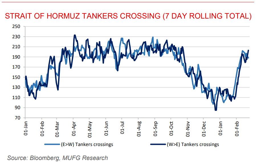 Oil slips as markets assess prospects for US-Iran nuclear deal. Oil prices eased, with Brent falling toward USD71/b and WTI also declining, as investors weighed the possibility of renewed diplomacy between the US and Iran despite ongoing military deployments in the Middle East. While President Trump signalled, he was considering a limited strike, Iranian officials expressed optimism about reaching a “win-win” diplomatic solution, with further talks expected in Geneva. Crude has risen this year largely on geopolitical risk premiums tied to fears of supply disruptions, particularly around the Strait of Hormuz, a critical transit route for Gulf oil exports. However, the recent narrowing in Brent’s backwardation suggests traders see less immediate supply tightness, even as tensions remain elevated and markets continue to hedge against potential disruptions.