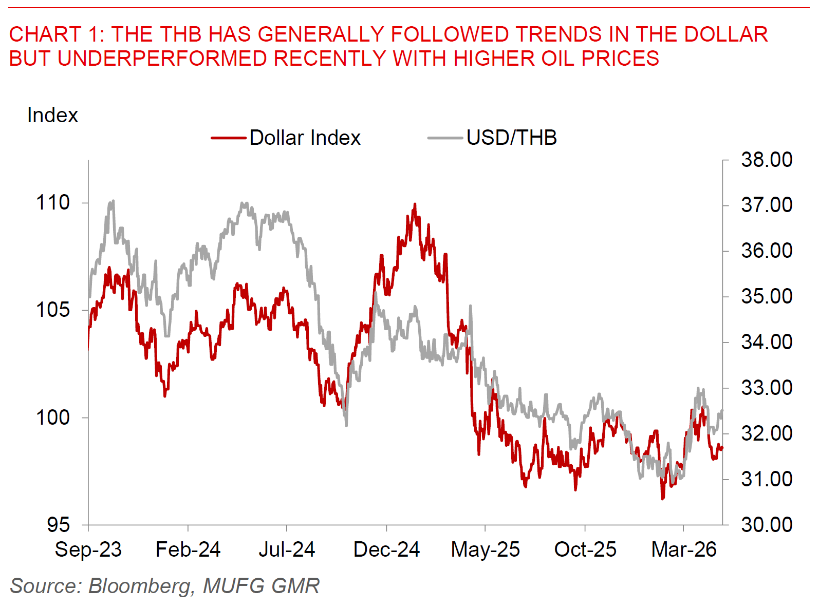 The Bank of Thailand’s policy meeting today will likely see the BOT keep rates on hold at 1%, and as also guided previously by BOT Governor Vitai Ratanakorn. The BOT will likely want to look through the inflation shock as much as possible, and with that fiscal policy including through cash handouts and subsidies through domestic fuel and diesel prices should take more of a role in managing the shock from the Middle East Conflict. Overall, this also means that the BOT will unlikely push back too much against currency weakness, and this will leave USD/THB ultimately dependent on how the SoH crisis plays out moving forward.