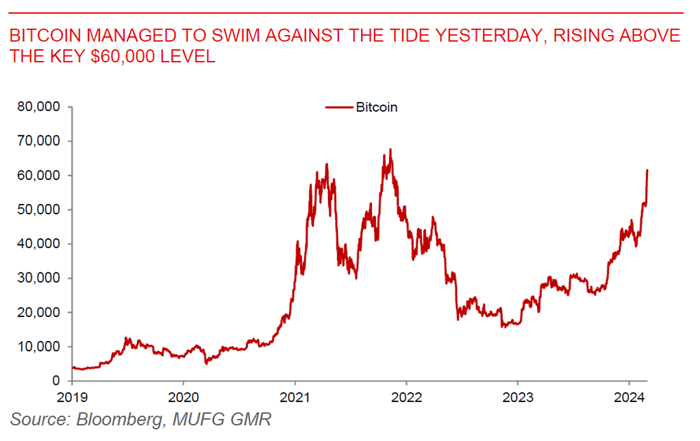 It was a somewhat risk-off day overnight, with equities falling and the Dollar strengthening, all be it that Bitcoin managed to swim against the tide and surpass the $60,000 mark. The macro data showed that US 4Q GDP was revised down slightly to 3.2% from the 1st estimates of 3.3%. The real story was in the details, with all categories of domestic demand revised up including private consumption, and with inventories now subtracting from growth. Overall, these US growth numbers suggest no Fed rate cuts are likely in the near-term, and the Fed speak overnight continued to indicate as such, including comments from both Williams and Bostic urging patience.