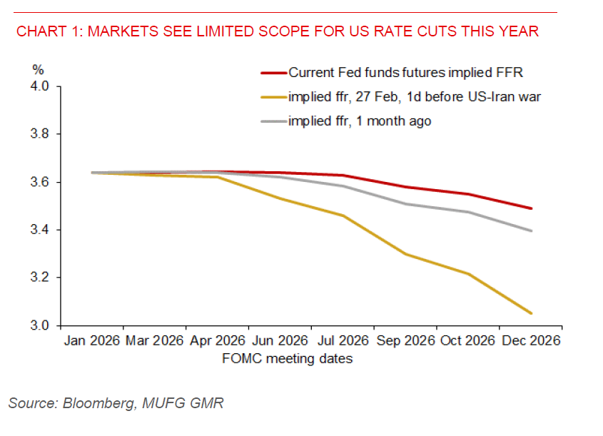 The S&P 500 index has recovered to pre‑war levels, while Brent and the USD have softened. However, market sentiment is likely to remain fragile. Without tangible progress in US–Iran diplomacy or an extension of the current two-week ceasefire, the gap between optimistic pricing and realities on the ground - closed Hormuz routes, tighter energy supply, and structurally higher energy demand - argues for caution. Rates markets echo this tension, with markets pricing out US rate cuts this year, suggesting easing expectations remain constrained by inflation and geopolitical risks.