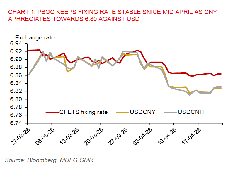 In Singapore, March CPI data will be closely watched. With Brent prices already sharply higher, imported inflation pressures are likely to build. Expectations of further MAS tightening in July should therefore keep the bias skewed toward a lower USDSGD.
