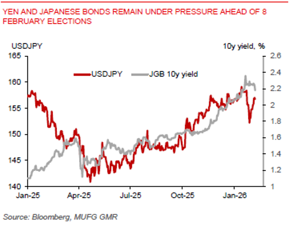 Yen and Japanese bonds remain under pressure ahead of 8 February elections