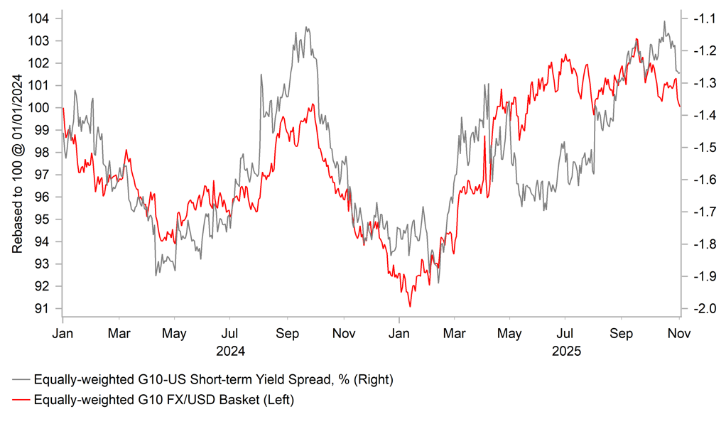 In contrast, the Canadian dollar has been one of the best performing G10 currencies over the last couple of weeks alongside the US dollar. USD/CAD attempted and failed to break back below the 1.4000-level after the BoC signalled that they are likely to pause their rate cut cycle in the near-term. The impact from the hawkish BoC guidance was then quickly offset by hawkish communication from Fed Chair Powell last week when he pushed back more strongly against market expectations for another 25bps Fed rate cut in December.