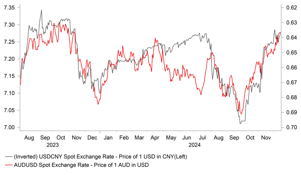 It’s clear monetary easing is coming very soon – any day over the coming weeks – which will ensure upward pressure on USD/CNY continues. The lack of detail on fiscal spending is likely in part to provide greatest flexibility in responding to Trump’s trade policy steps taken following his inauguration. But further substantial monetary easing is highly likely which will inevitably lift USD/CNY further even before we get Trump tariff details. The China factor remains another downside risk for EUR/USD and the likes of AUD/USD with terms of trade risks related to weak China demand.