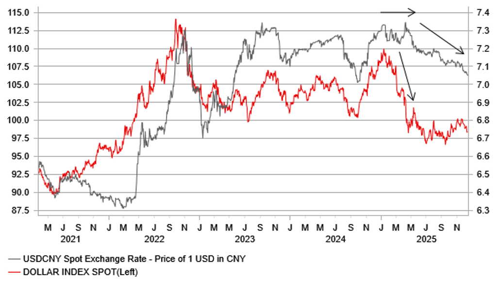 CHINA ALLOWING CNY TO STRENGTHEN MORE VS. USD