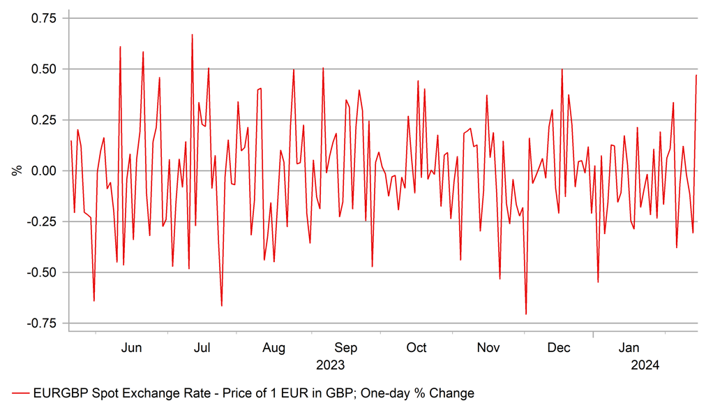 LARGEST ONE-DAY JUMP IN EUR/GBP SINCE DECEMBER