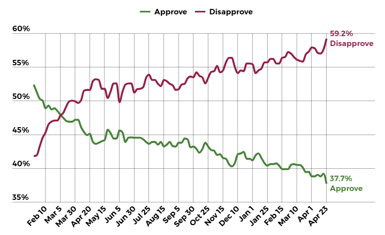 PRESIDENT TRUMP’S POPULARITY CONTINUES TO DECLINE WITH NET APPROVAL AT A RECORD LOW IN THIS TERM OF OFFICE
