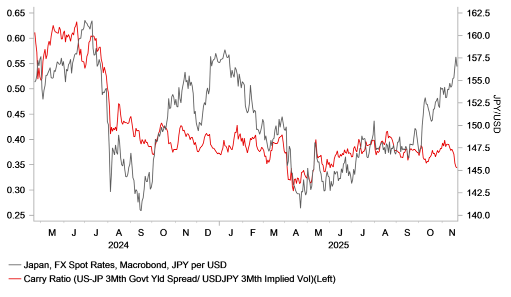 The sharp one-sided yen sell-off is generating building concern amongst Japanese policymakers who have signalled a rising risk of direct intervention to support the yen if the unwanted price action continues. Furthermore, BoJ officials have been indicating that yen weakness could encourage an earlier resumption of rate hikes. The Nikkei reported comments late on Friday from BoJ board member Kazuyuki Masu who stated “I can’t say what month it’ll be, but in term of distance, we’re close” to raising rates again. It was his first exclusive interview since joining the BoJ policy board in July. He believes that the policy rate is lower than the neutral rate and strongly believes we need to change that quickly”. The comments were notable as Kazuyuki Masu had previously been viewed as one of the more dovish BoJ board members. Earlier in the week both BoJ Governor Ueda and Junko Koeda had also indicated more concern over yen weakness and the need for policy normalization. Recent rhetoric supports another rate hike in December or January although market participants remain sceptical given the ongoing uncertainty over whether the government will push back against an earlier hike to maintain more supportive policy for growth. While those doubts persist, the yen will struggle to rebound from deeply undervalued levels.
