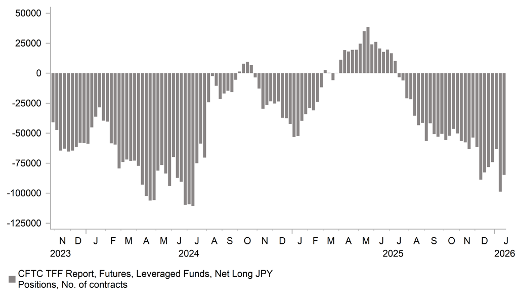 Speculation over the risk of joint intervention between the US and Japan has already proved effective in the near-term in helping to reverse yen weakness with USD/JPY falling back to the lowest level since early November although it is still around 7 big figures higher than at the start of October when the recent yen sell-off was triggered by domestic political developments in Japan. The release of the latest IMM report revealed that short yen positions held by Leveraged Funds has almost doubled over the last coupe of months. The scaling back of elevated short yen positions and alongside broad-based US dollar weakness are weighing on USD/JPY, although doubts will remain over the sustainability of yen strength given fiscal concerns in Japan have not been addressed ahead of the upcoming lower house election on 8th February.