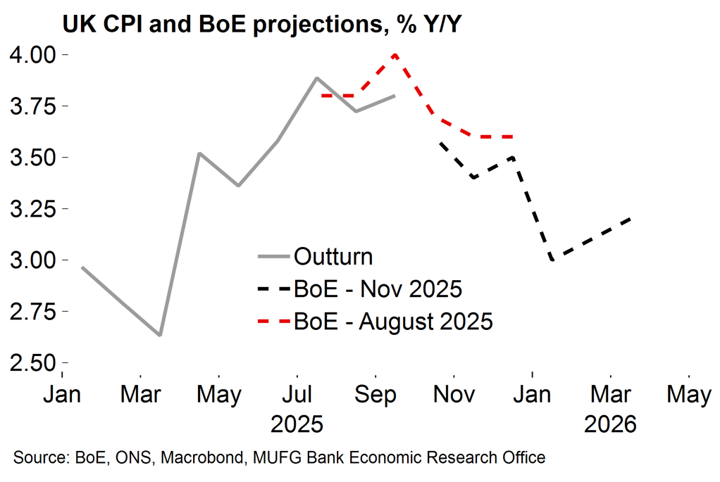 Bottom line: The BoE presented a range of new information but there was nothing to change our view that the next cut will be in December before two more moves in 2026.