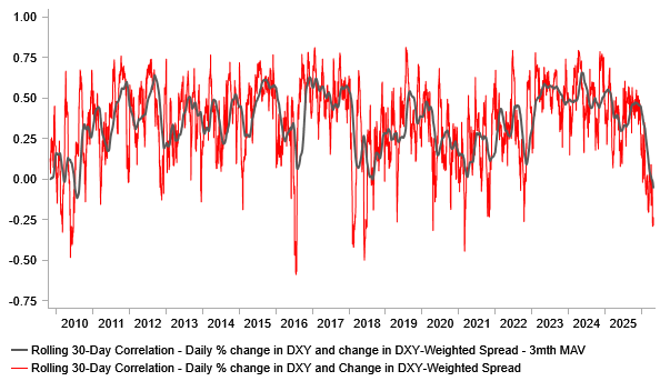 USD & YIELD SPREAD CORRELATION HAS WEAKENED SHARPLY