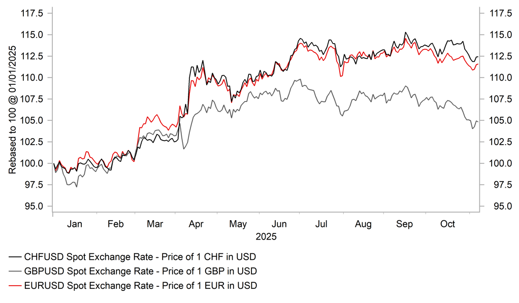 Source: Bloomberg, 14.00 GMT, 7th November 2025 (Weekly % Change vs. USD)