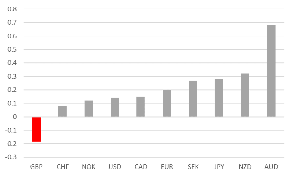 At the same time, the AUD has benefited from a hawkish repricing of RBA policy expectations. Short‑term yields in Australia have seen an outsized move to the upside over the past three months compared with other G10 economies. The 2‑year Australian government bond yield has risen by almost 70bps, versus an average increase of around 20bps elsewhere in the G10. This shift has reinforced the AUD’s status as a high‑yielding G10 currency and strengthened its carry appeal. The main exception has been the UK, where short‑term yields have fallen by roughly 20bps. The widening yield differential between Australia and the UK continues to support our long AUD/GBP trade recommendation.