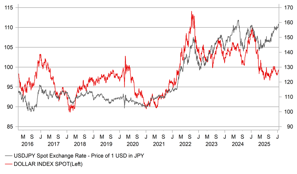 USD/JPY DIVERGENCE WITH DXY UNDERLINES SUSTAINED YEN UNDERPERFORMANCE