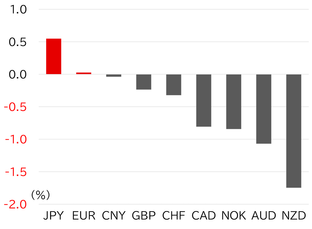 The USD/JPY opened the week at 154.20. Trading was quiet in the low 154 range on 3 November, a Japanese holiday, before conditions shifted on 4 November. The pair rose to the high for the week of around 154.50 in early Tokyo hours, but fell back to around 153.50 after Finance Minister Satsuki Katayama said "we are seeing one-sided and rapid movements in the currency market" and following a sharp drop in the Nikkei 225. Yen buying picked up steam on 5 November, pushing the pair temporarily below 153. The USD/JPY then recovered, rising back to above 154 supported by firm US economic data. The pair slipped toward 153 again toward the weekend as concerns over a slowdown in the US labor market weighed on the dollar, and remained near that level at the time of writing (Figure 1). Among G10 currencies this week, the yen was the strongest performer. In contrast, as the recent dollar rally lost momentum, petrocurrencies such as the Canadian dollar and Norwegian krone, along with the antipodean currencies, underperformed (Figure 2).