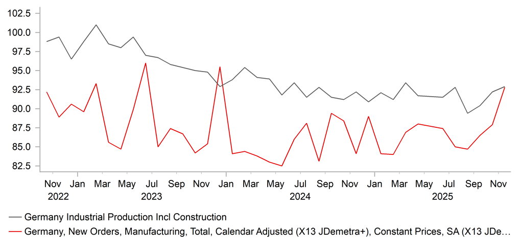 One important uncertainty for 2026 is how quickly the EUR 1 trillion fiscal spending program on infrastructure and defence in Germany will kick in to lift economic activity. The data in January suggests that the impact could come quite quickly. German factory orders surged 5.6% MoM in November after a 1.6% gain in October. The annual rate now stands at 10.5%, the biggest gain since May 2011 when the covid period is excluded. That is set to boost industrial production over the coming months and help lift GDP growth. Real GDP growth is expected to accelerate from just 0.2% in 2025 to 1.0% this year. The Greenland threat from President Trump is a wake-up call for Europe and we see increased defence spending in other countries over the coming years. Sovereign balance sheet capacity is limited but increased central issuance via the EU bond market under programs like SAFE and the EDM (European Defence Mechanism) will likely be utilised to speed up spending.