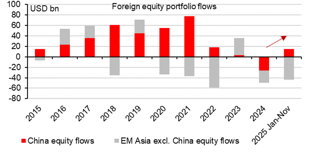 FOREIGNERS TURNED NET BUYERS OF CHINESE EQUITIES IN 2025