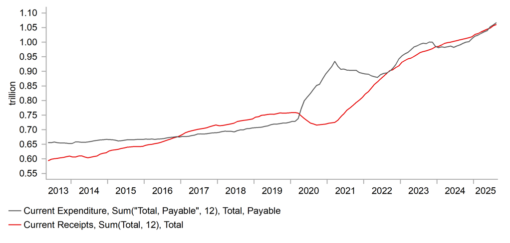 UK GOVT. CURRENT EXPENDITURE VS RECEIPTS