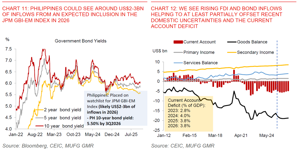 In addition, an expected inclusion of the Philippines in the JPM GBI-EM index should also support foreign bond inflows in 2026, and is expected to bring in around US$2-3bn of inflows.