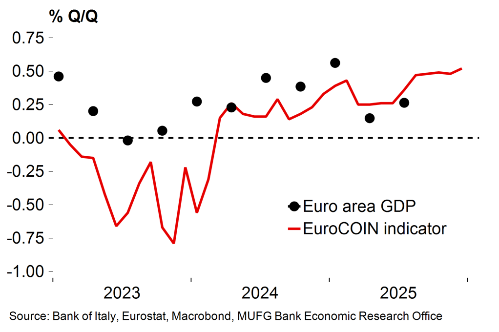 - The euro area economy starts the year on a decent footing despite the range of obvious geopolitical risks. We expect quarterly growth to improve through 2026, supported by German fiscal stimulus, EU recovery fund disbursements and reasonable consumer dynamics. Brighter prospects for German industry, where we expect a moderate cyclical recovery, add to the case for gradually improving growth momentum at a euro area level.