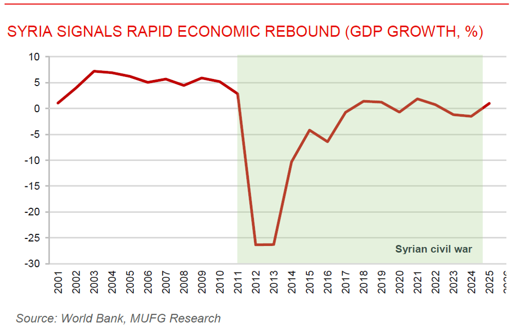 Syria signals rapid economic rebound and financial rebuilding. Syria’s economy is growing far faster than the World Bank’s 1% projection for 2025, driven by the return of roughly 1.5 million refugees after the end of its 14-year civil war, prompting ambitious plans to rebuild its financial system and position the country as a regional financial hub for the Levant, according to the Central Bank governor AbdulKader Husrieh. Speaking at the Reuters NEXT conference, he said Syria is finalising a deal with Visa to establish modern digital payment networks, collaborating with the IMF to improve economic data measurement, and upgrading anti-money laundering and counter-terror financing regulations to restore credibility with international banks. He also expects most US sanctions to be fully repealed by the end of 2025, which he said would encourage correspondent banking ties to return. While reliable data remains limited, Husrieh cited lower inflation and a strengthening exchange rate as early indicators of recovery, underscoring optimism about Syria’s economic revival and reintegration into global financial market.